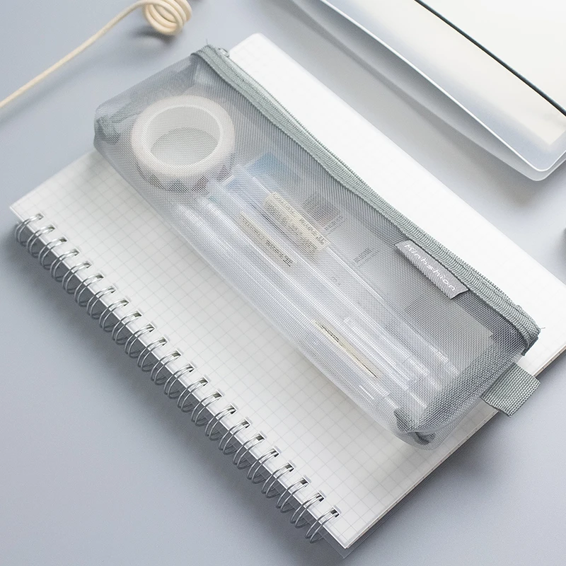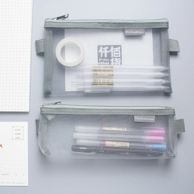 Простой Прозрачный сетчатый чехол для карандашей, офисный студенческий чехол для карандашей, нейлоновый чехол, школьные принадлежности, футляр для ручек