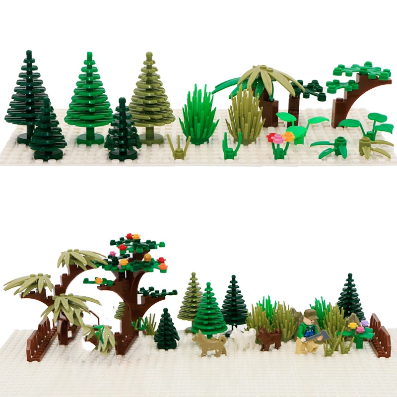 Строительные блоки для дома, Классические фигурки, зеленый куст, цветок, трава, листья деревьев