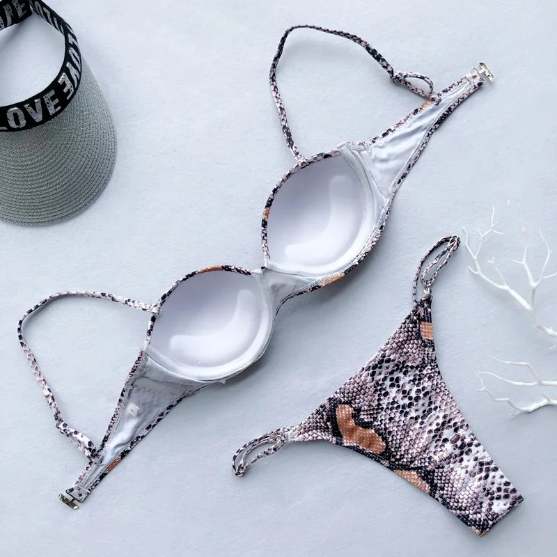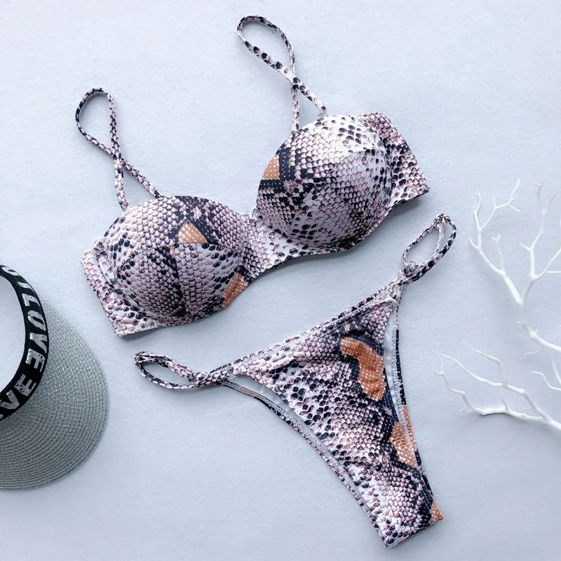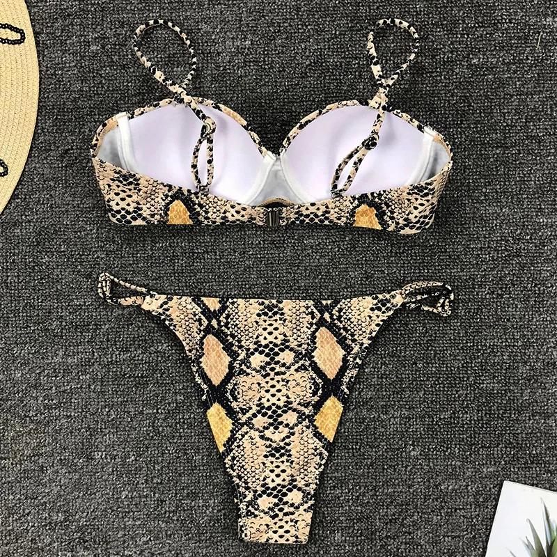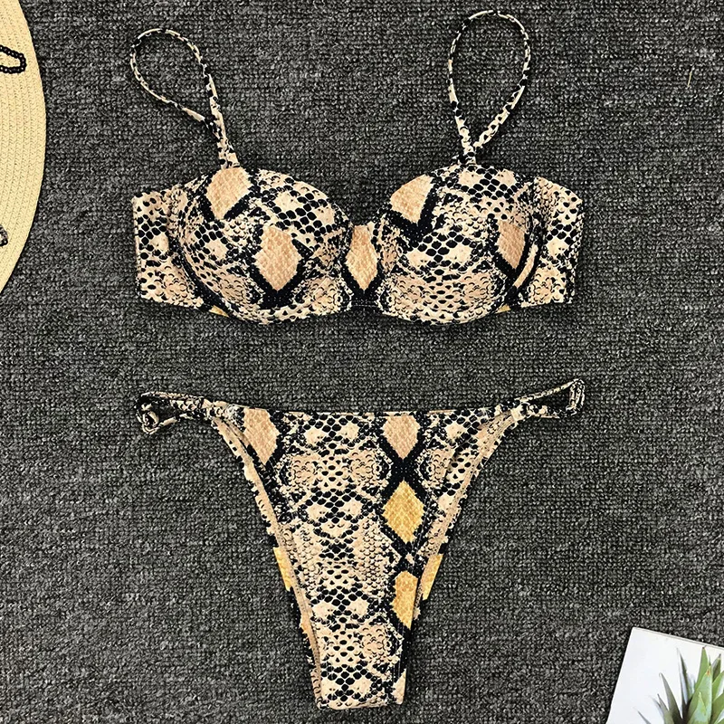 Сексуальный змеиный принт на косточках бюстгальтер чашка бикини женский купальный костюм Женская одежда для плавания из двух частей набор микро-бикини стринги Купальный костюм для плавания