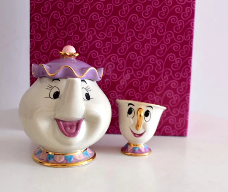 Набор для чая с героями мультфильмов Красавица и Чудовище, чашка Mrs Potts, чип Бела, кружка, чайник, молочный кофе, креативный подарок