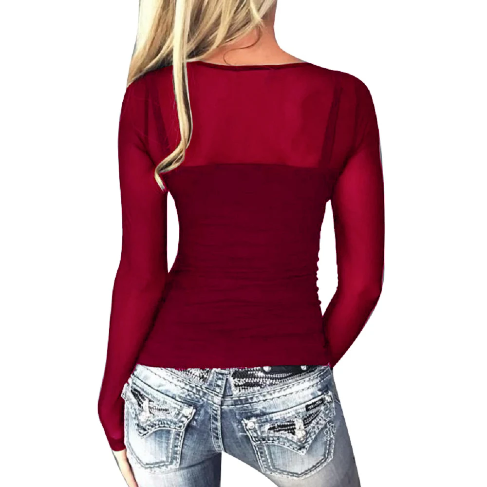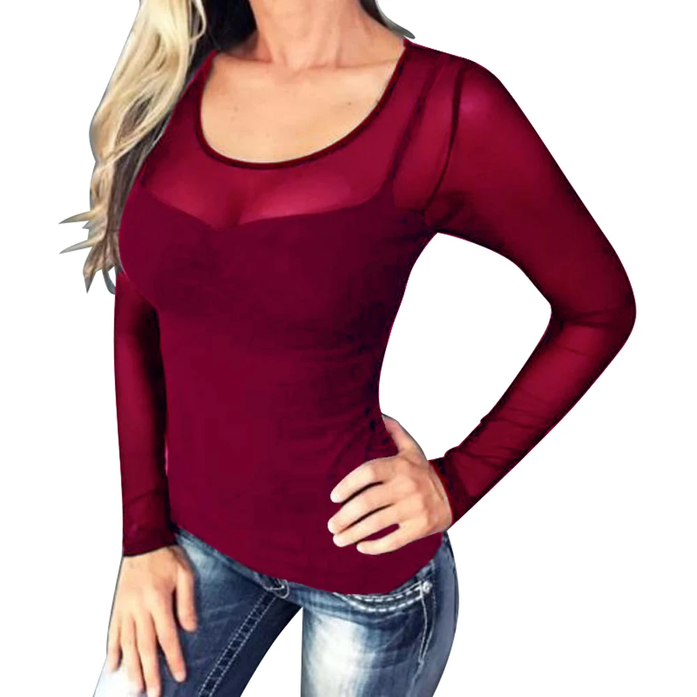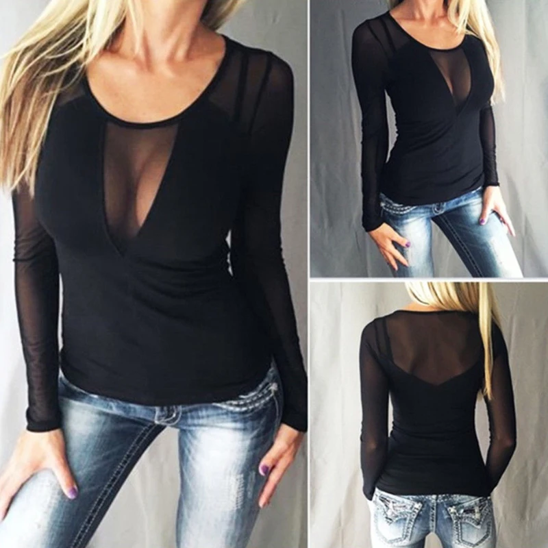 Сексуальные топы, женская рубашка с длинным рукавом, рубашка с низким вырезом, прозрачный боди, футболка, туника, топы