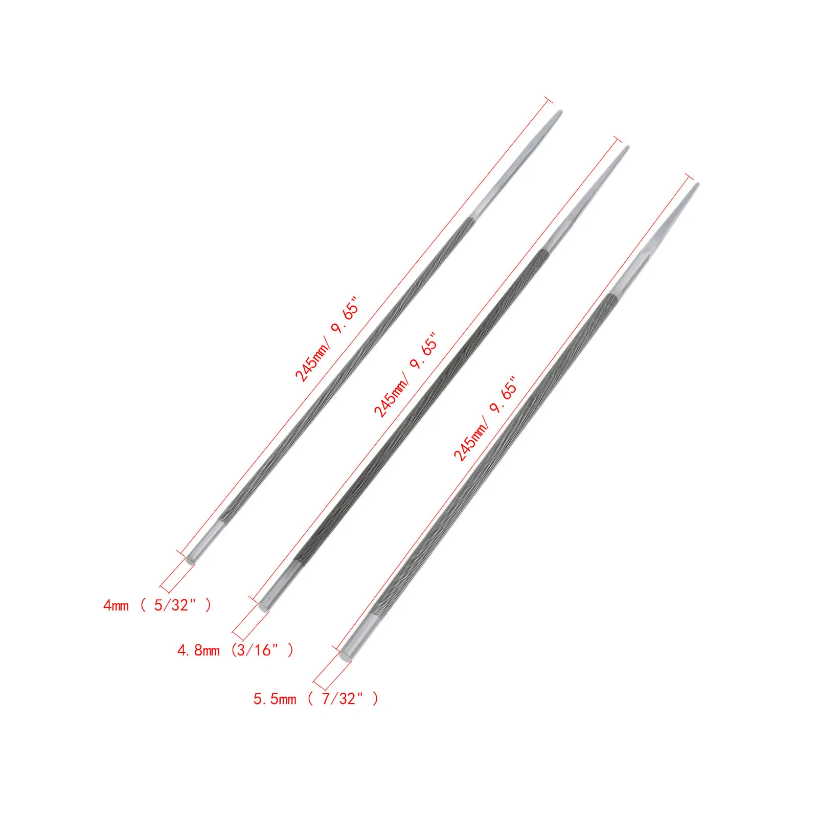 100% новый бренд. Материал: Высокоуглеродистая сталь (T12). HRC 62. 3 размера на выбор: 4 мм (5/32 " ) /4,8 мм (3/16" ) /5,5 мм (7/32 " ) . Длина файла: прибл. 245 мм/9,65 ".