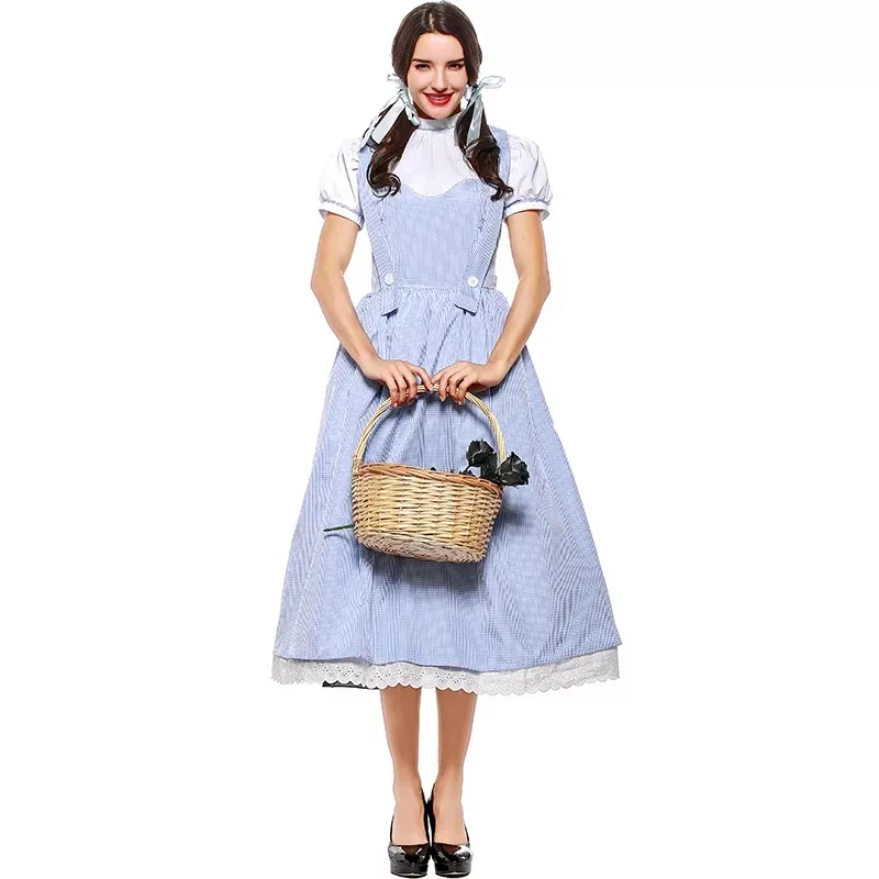 Костюм горничной Дороти костюм на Хэллоуин женский модный фартук клетчатое платье с короткими рукавами сказка и волшебство для взрослых девочек размера плюс