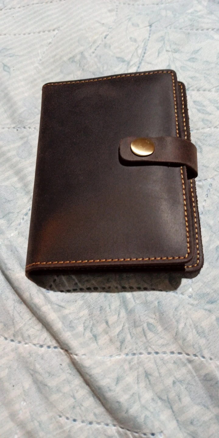 классная обложка на паспорт. правда, больше обычной. не во все женские сумки поместится. Пахнет кожей, но как мне скажал знающий человек, это спресованные остаки кожи, а не цельный кусок. Впрочем, на качество это сильно не влияет. У нас натуральная кожа стоит от 2500