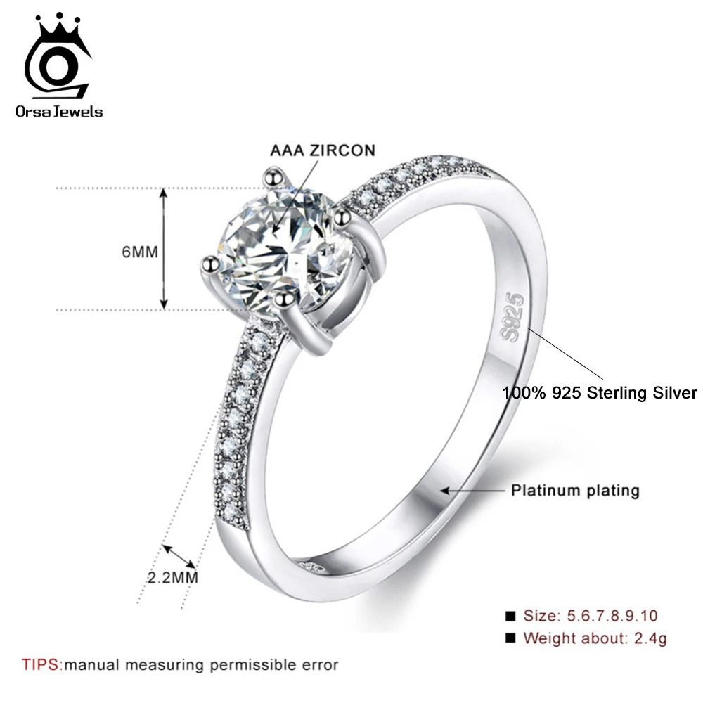 ORSA JEWELS Настоящее серебро 925 пробы женские кольца AAA Блестящий кубический циркон зубец Установка женское роскошное свадебное кольцо ювелирные изделия SR56