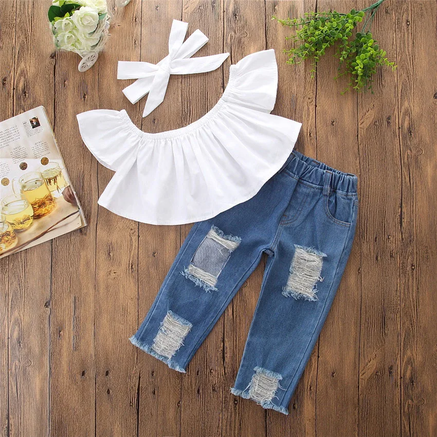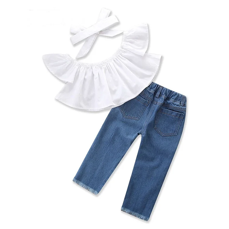 Комплект детской одежды из футболки, повязки на голову и джинсов, на возраст 1-6 лет