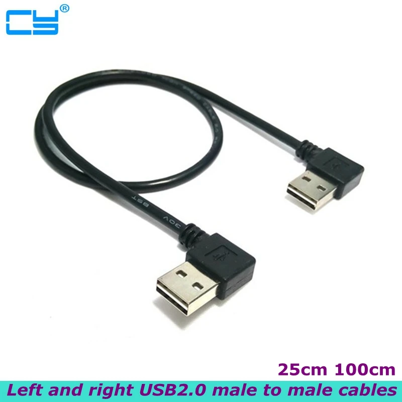 10 шт.лот 480 м USB 2,0 правый угловой 90 градусов штекер-левый Угловой Штекер кабель для передачи данных 1 м черный 25 см 100