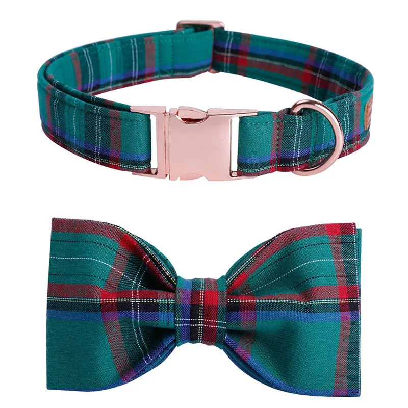 Geen клетчатый ошейник и поводок с галстуком-бабочкой, металлическая пряжка, хлопковая ткань, ошейник для собак и кошек, поводок для собак, аксессуары для домашних животных