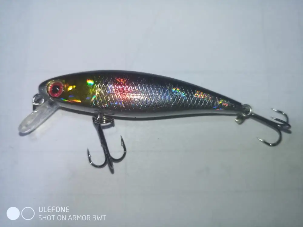 Действительно медленно тонущий. Как видео. Убрав заводное кольцо воблер стал медленно всплывающий. Длинна без лопости 5,5см, вес 4гр.