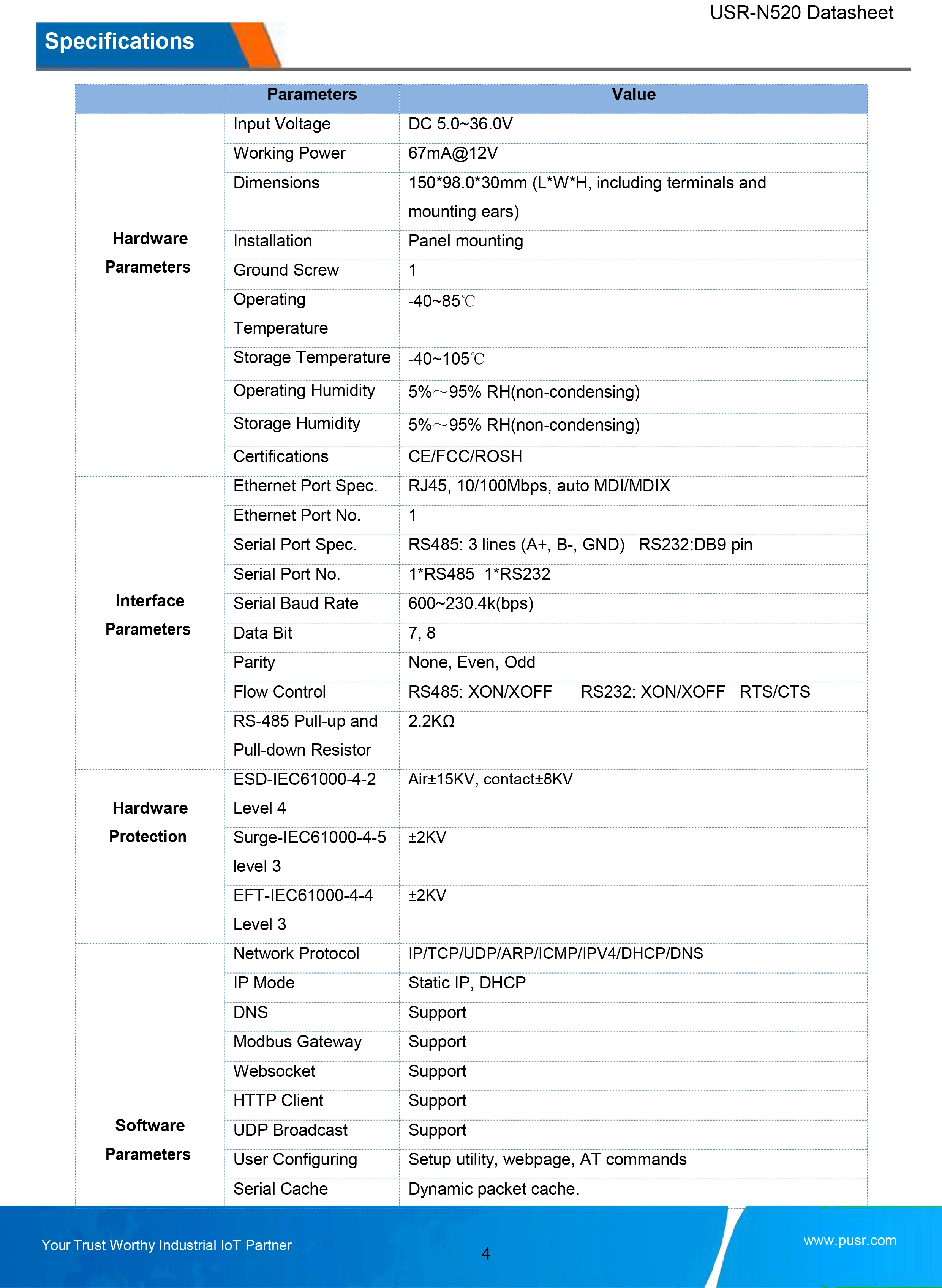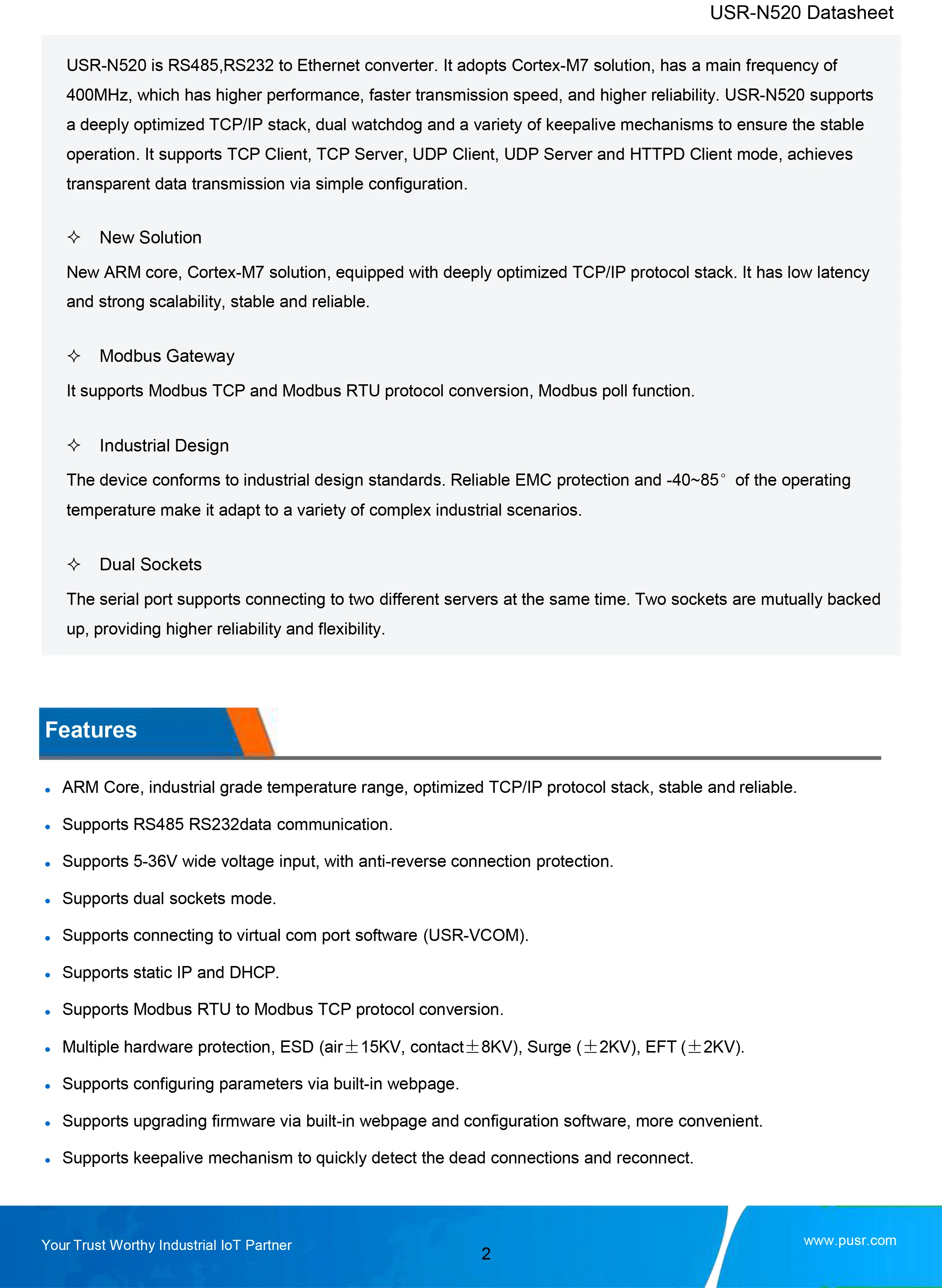USR-N520-это промышленный Последовательный RS232 RS485 RS422 к Ethernet TCP/IP конвертер для прозрачной передачи данных. Внутренняя интеграция с протоколом TCP/IP. Пользователь может настроить параметры с помощью веб-сервера или программного обеспечения для реализации удаленного сбора данных, дистанционного управления и управления.