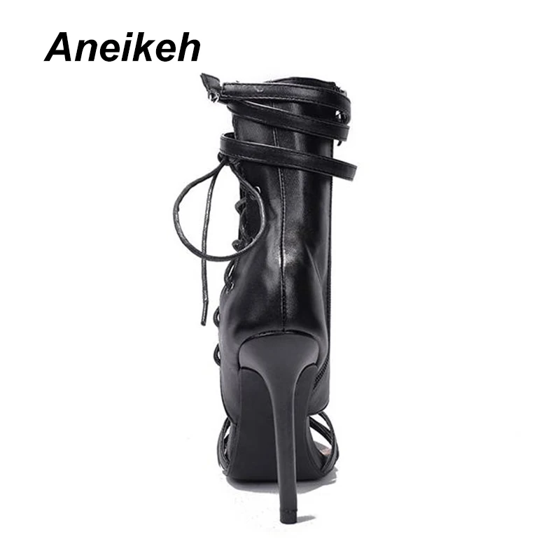 Женские ботинки Aneikeh, с ремешком и пряжкой, черные, на шнуровке, с открытым носком, на высоком каблуке, сандалии сексуальный Гладиатор