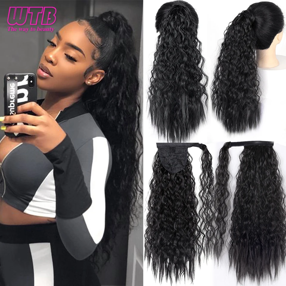WTB 22 дюйма, длинные волнистые накладные волосы на зажиме для конского хвоста, термостойкие синтетические натуральные волнистые накладные шиньоны с конским хвостом