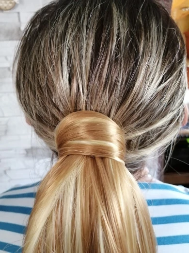 хвост подошел на осветленные русые волосы.но у меня волосы длинные и этот хвостик бесполезен;)