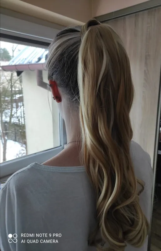Этот хвостик, для тех, кому нужно добавить обьема к собственным волосам. Если свои маленькой длины он смотрится сильно тощим, тоненьким. Это как на мой взгляд. Есть повышенный блеск. Отдельная прядка предназначена для маскировки крепления.Крепление - лента в конце- липучка. В целом покупкой довольна. Запаковано хорошо