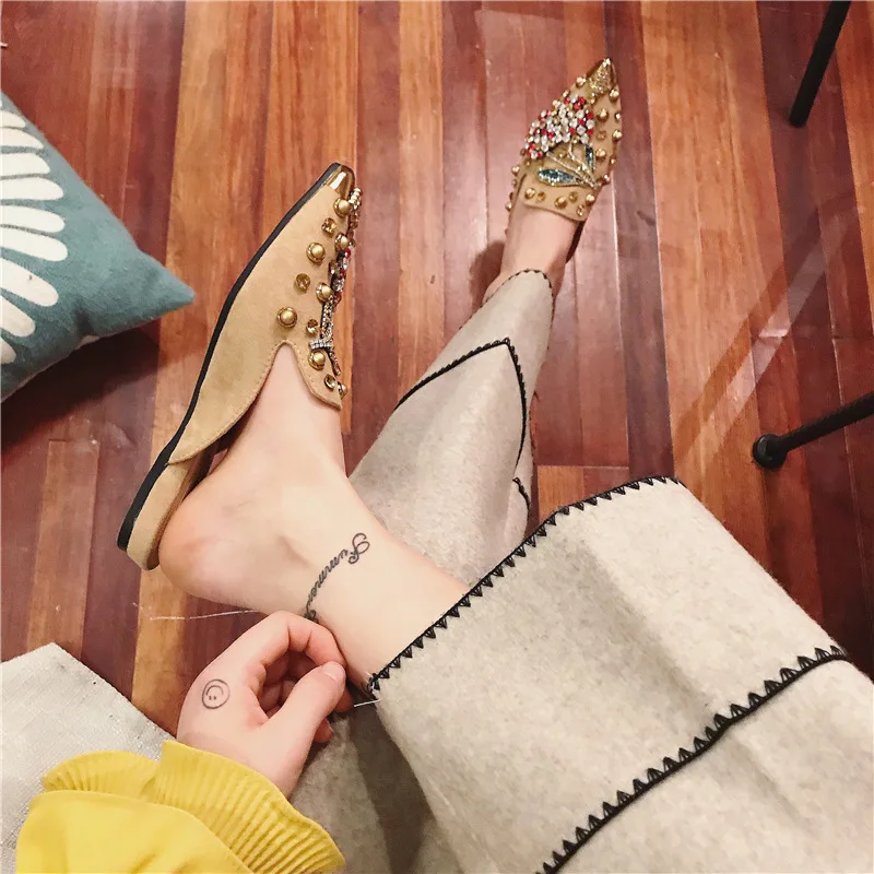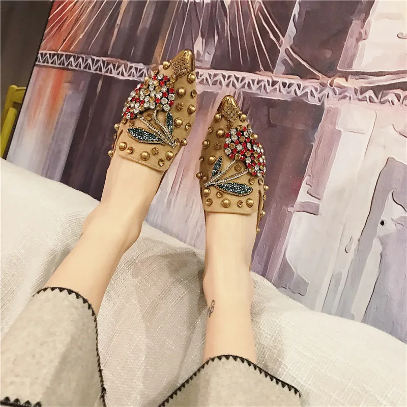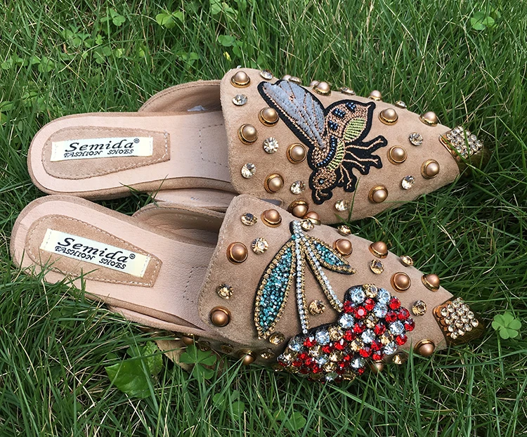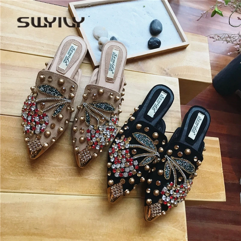 Шлепанцы SWYIVY женские с заостренным носком, цветами и кристаллами, роскошные Тапочки для улицы, сланцы, весна 2018