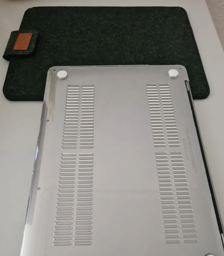 Сначала были проблемы с перекрытием крышек. Даже написал продавцу. Потом попробовал еще раз и все получилось. Качество среднее. Имею Macbook Air с чехлом от другого производителя. Там более мягкий пластик и покрытие надежнее.