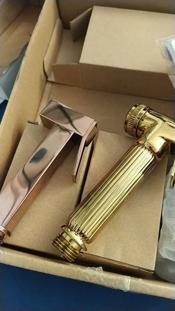 Туалетный золотой ручной подгузник, медный распылитель для биде, душ, Shattaf, набор для душа, струйный и золотой угловой клапан BD211-B