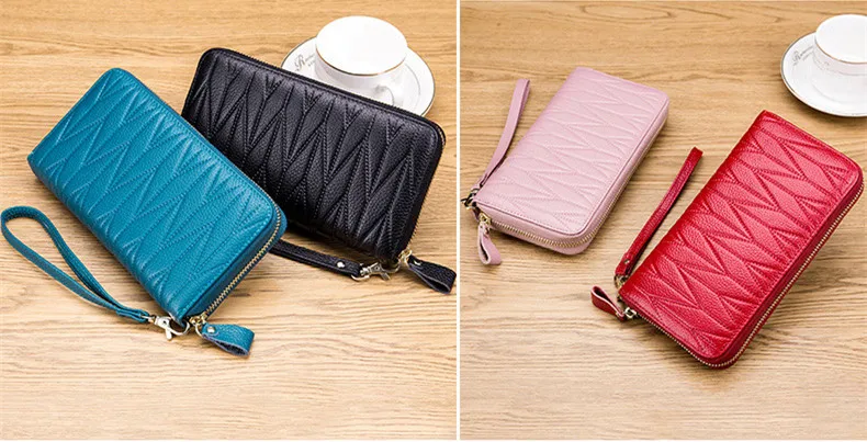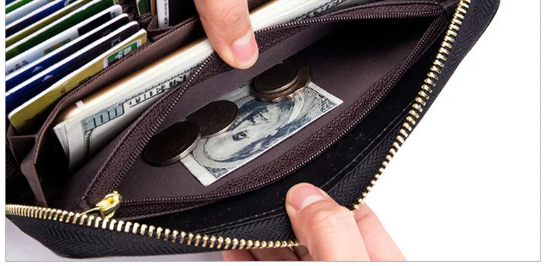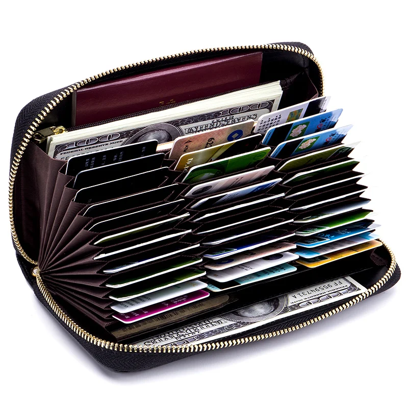 Длинный кошелек из натуральной кожи на молнии, визитница с рчид, кредитница для визиток, женский клатч, держатель для мелочи, кошелек бумажники, подходят для паспорта