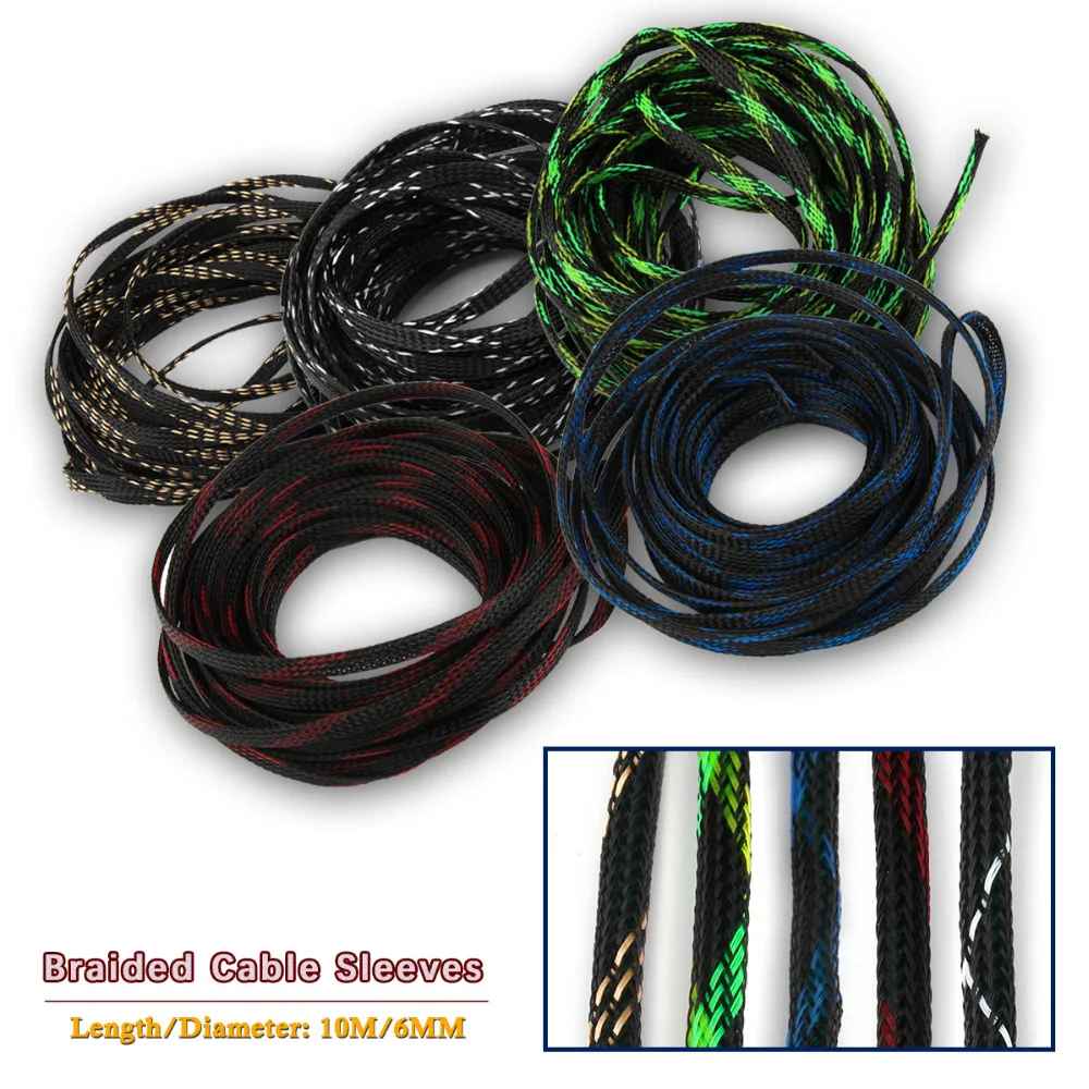 10 м 6 мм кабельная втулка проволочная сетка шок для кабельных комплектов PET нейлоновая плетеная кабельная муфта змеиная сетка защита провода