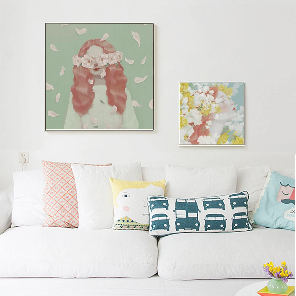 Ван арт скандинавские детские украшения цветок девушка портрет картина маслом постеры печати на холсте Настенная картина для гостиной современный большой