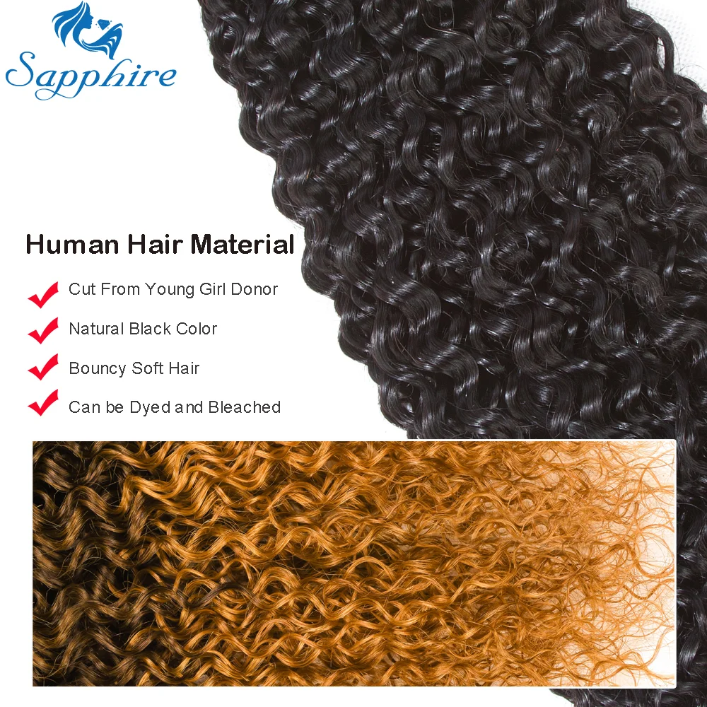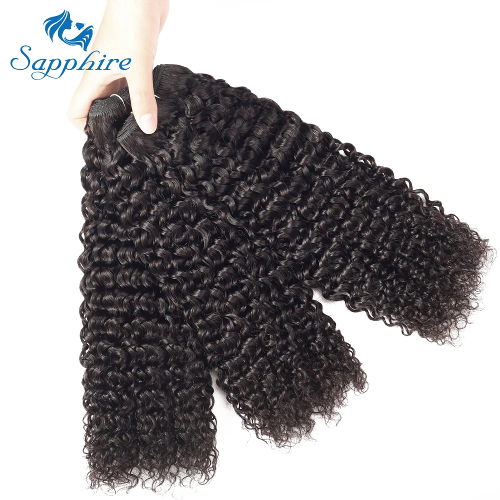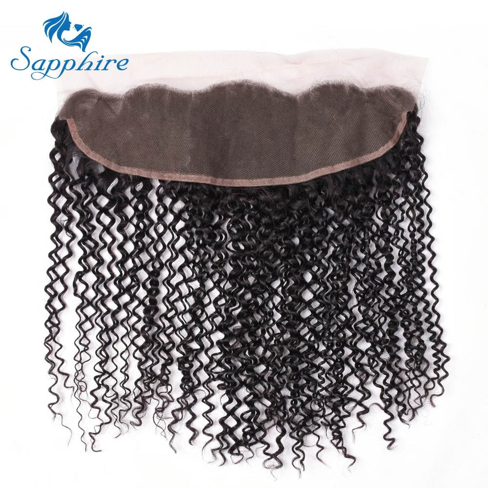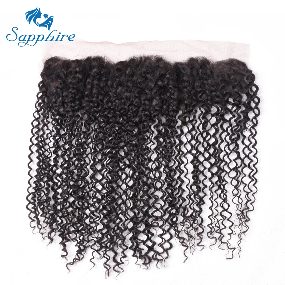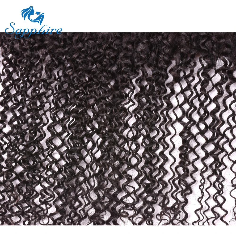 Сапфировые кудрявые пучки с фронтальной бразильской фронтальной щетиной с пряди человеческие волосы натурального цвета 3 пряди с фронтальной