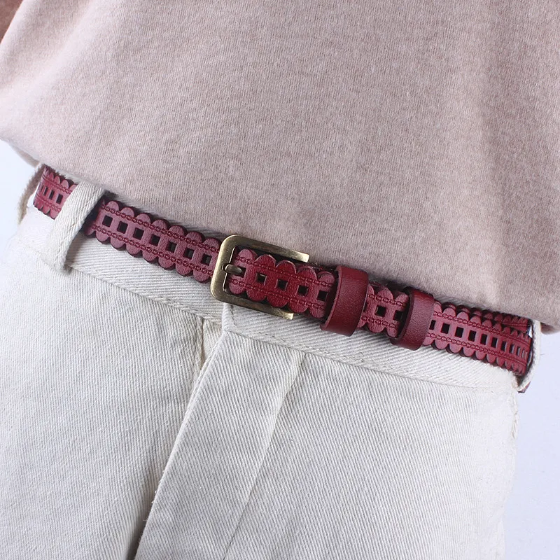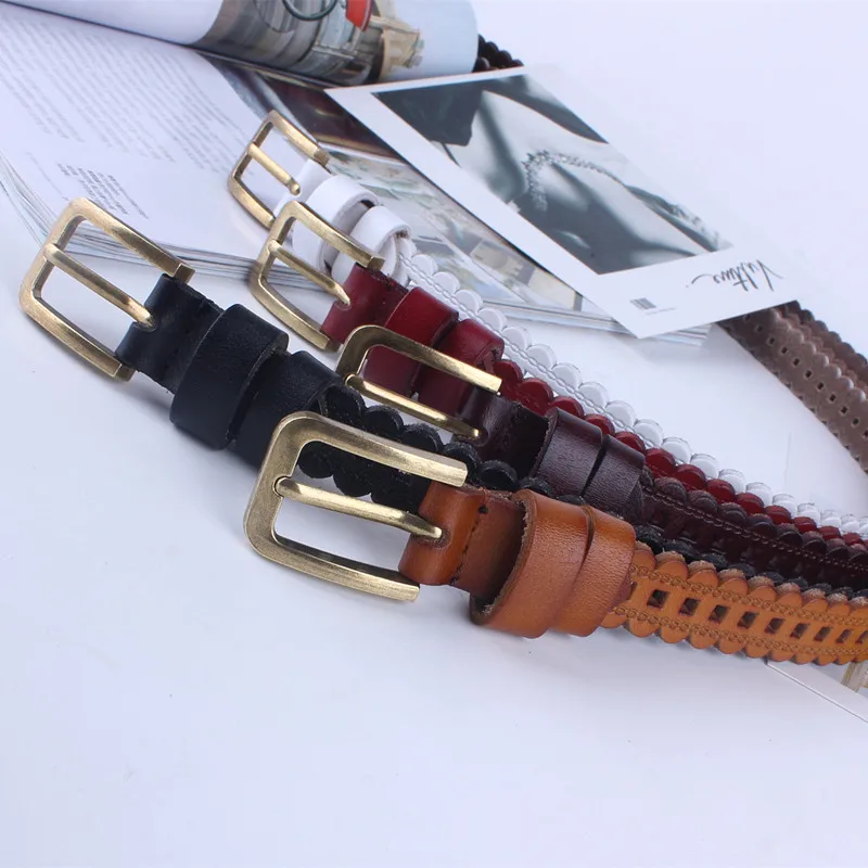 Ремень из натуральной воловьей кожи для женщин, модный ажурный пояс в стиле ретро для платьев, джинсов, повседневный коричневый