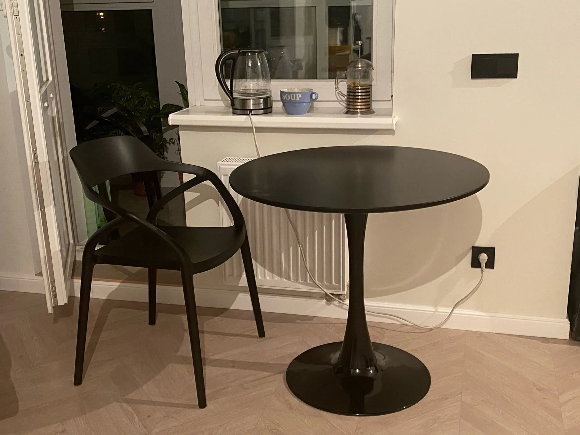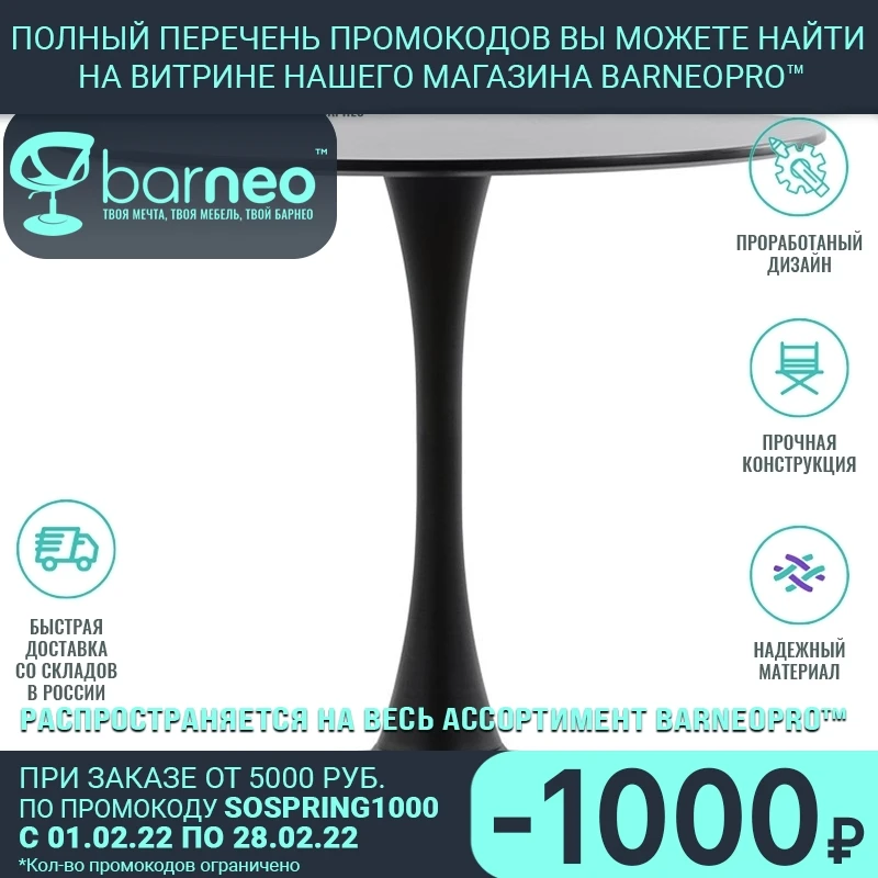 95252 Barneo T-3 МДФ интерьерный стол черный стол обеденный стол на металлическом основании стол круглый стол кухонный стол мебель для кухни стол для дачи стол для лофта доставка Казахстан бесплатная доставка по России