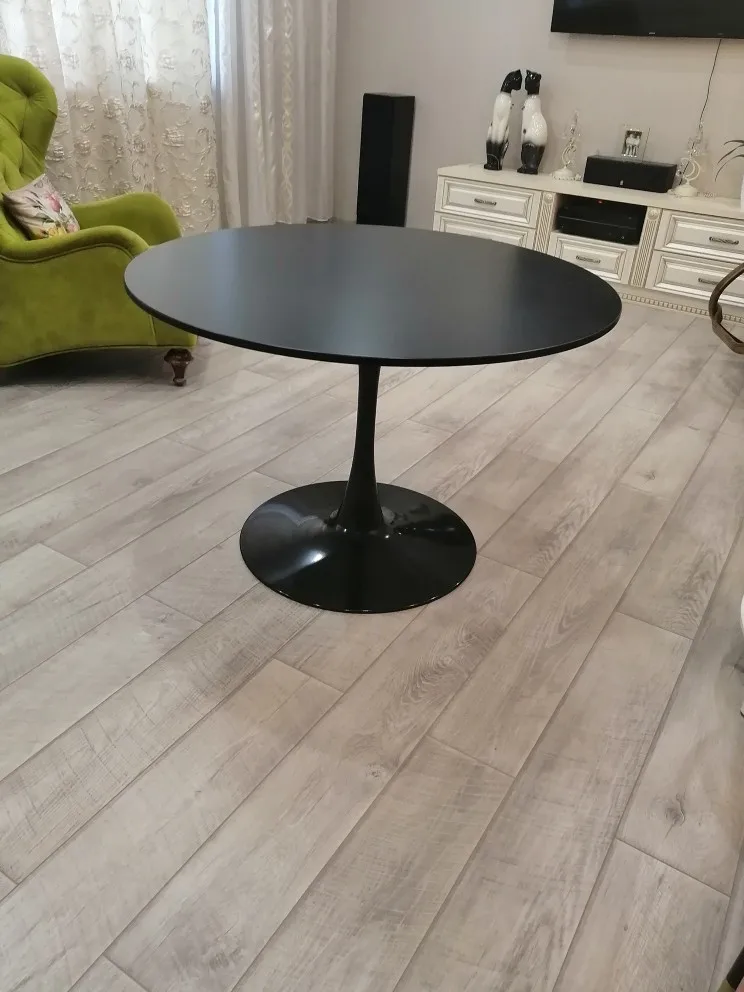 Стол замечательный, стоит крепко. Ножка аккуратная, тоненькая. Все крепежные элементы были в комплекте, как и ключи. Поверхность стола очень хрупкая, легло оставить царапины, поэтому рекомендую скатерть из жидкого стекла.