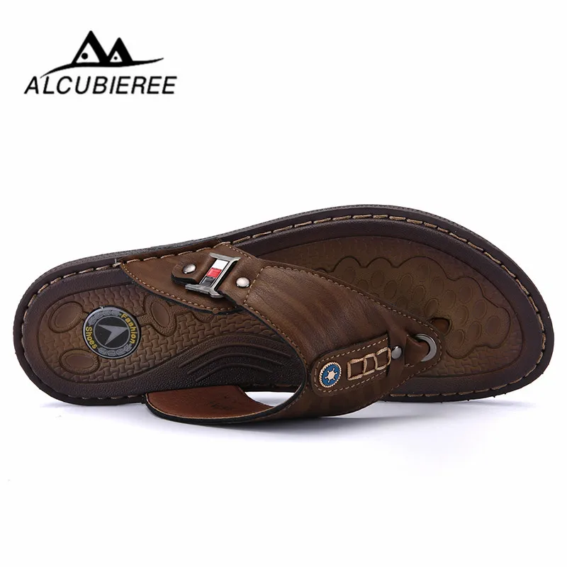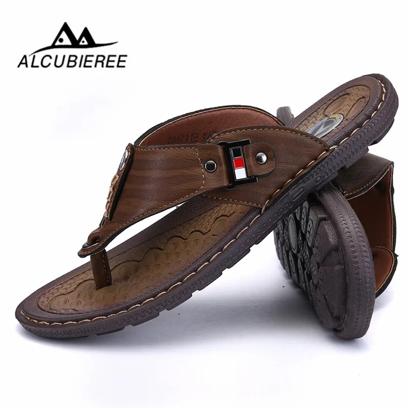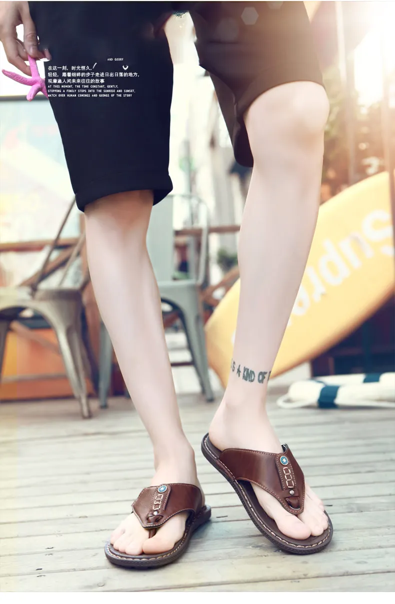 Шлепанцы Hig мужские кожаные, пляжные сандалии, Нескользящие, Повседневная Уличная обувь с ремешками, летняя обувь, 2020