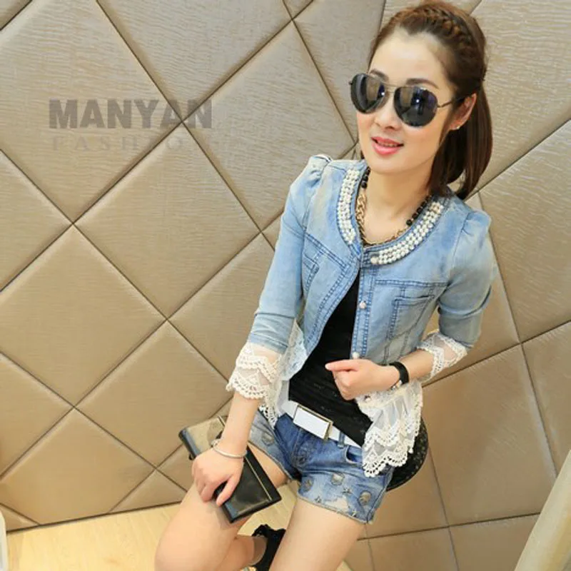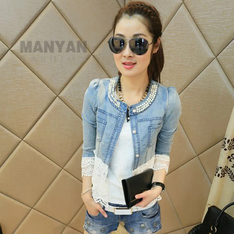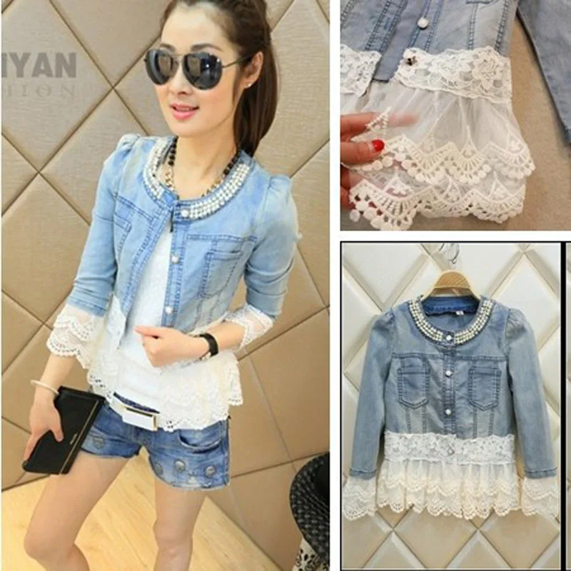 Новое поступление 2021, кружевная женская джинсовая куртка, лоскутные тонкие повседневные женские куртки, женское блестящее пальто
