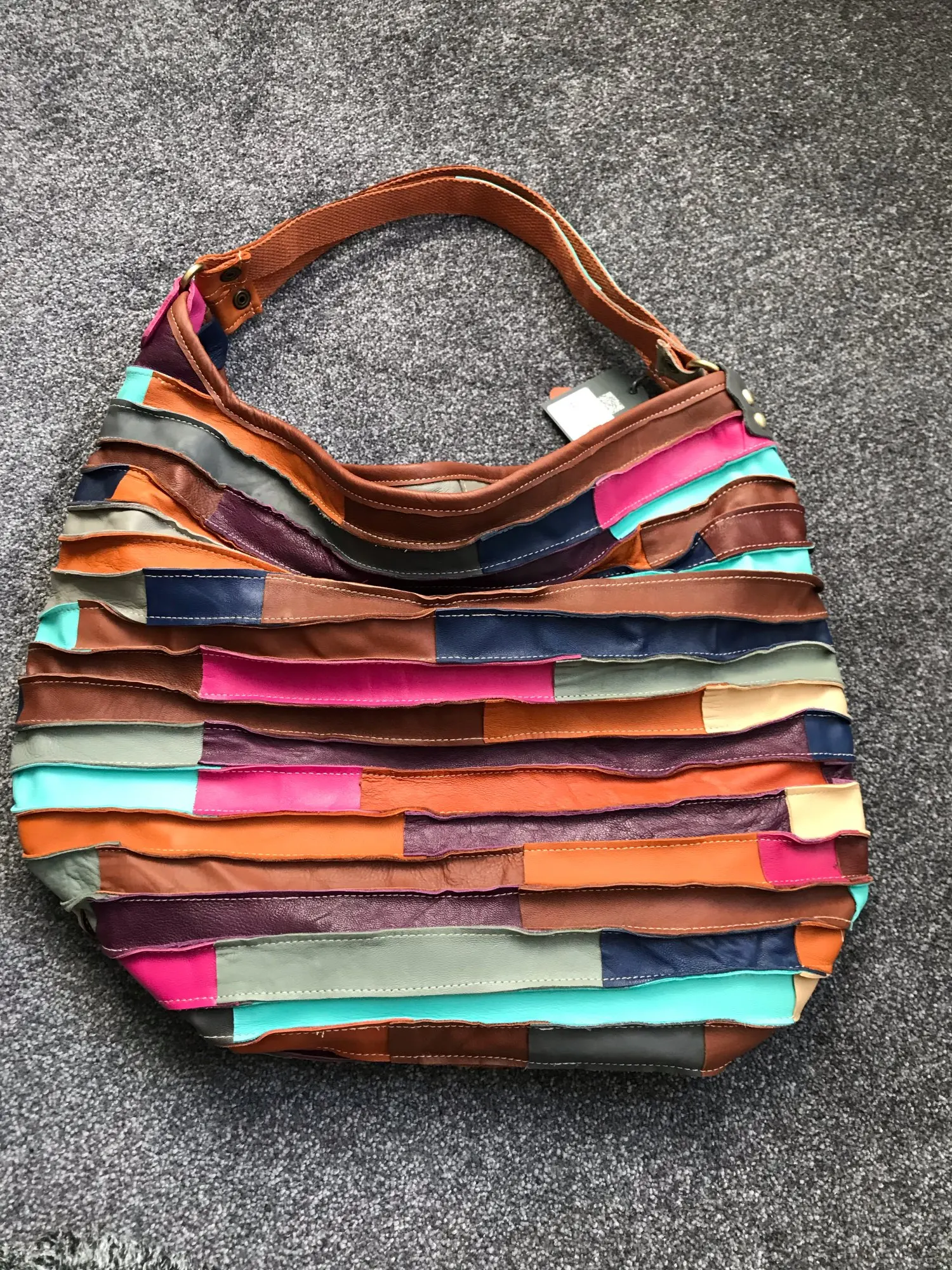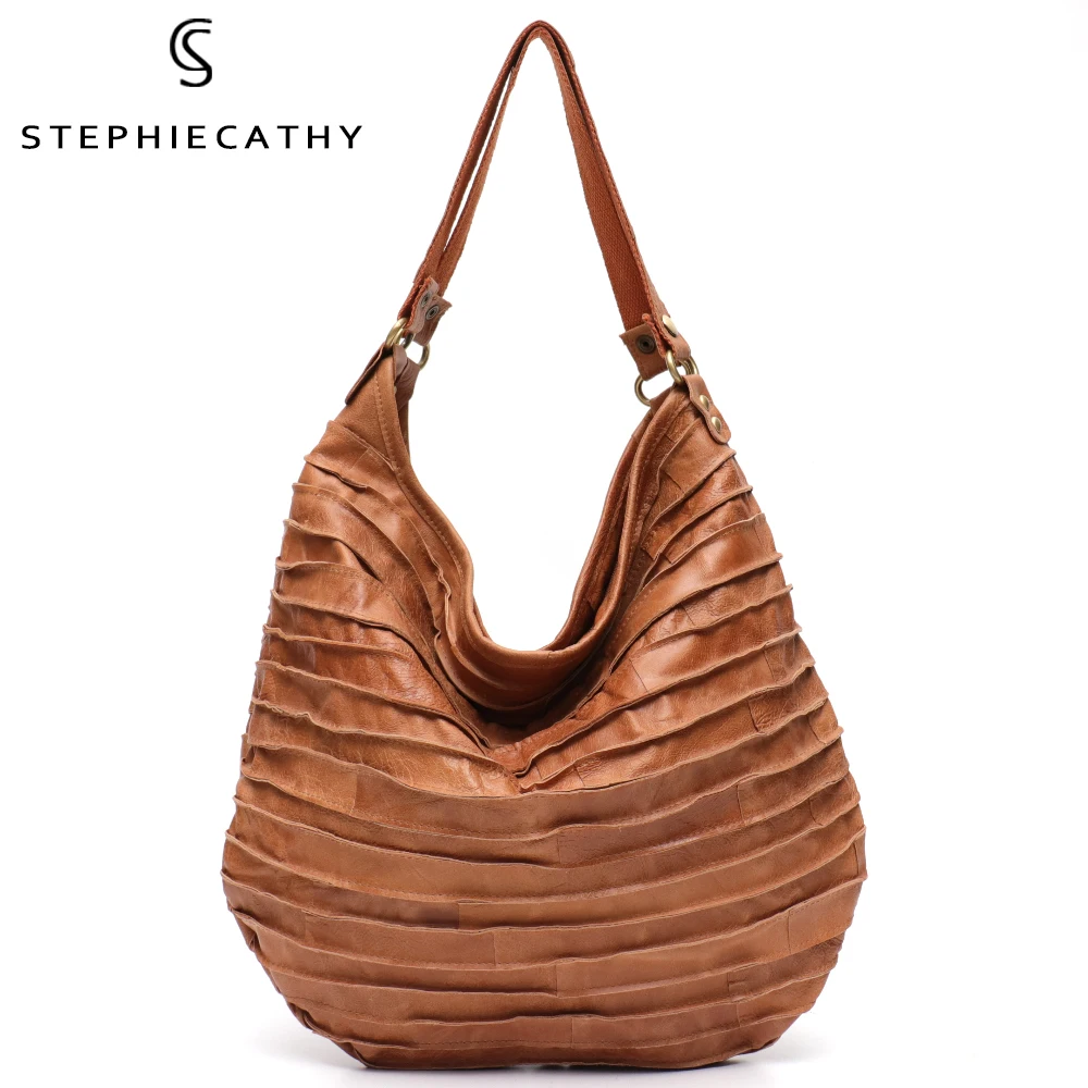 SC винтажные сумки-хобо из натуральной овечьей кожи в полоску для женщин Большая Сумка-тоут через плечо из натуральной кожи в стиле пэчворк