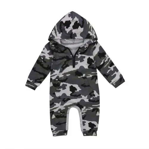 Комбинезон для новорожденных мальчиков и девочек, комбинезон с капюшоном, камуфляжный комбинезон с длинным рукавом, наряды, одежда, новинка