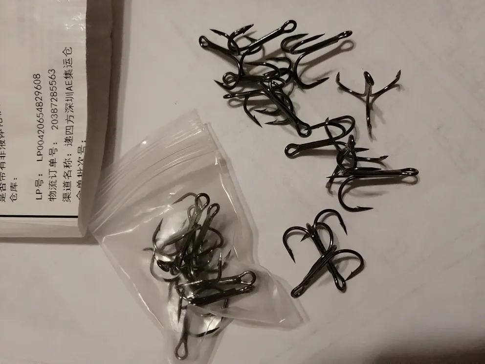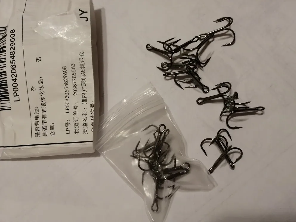 Заказ пришёл за 15 дней, тройники все острые, только 2 кривоваты из 20 штук, позже опробую в деле.