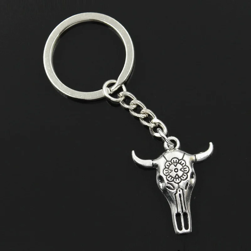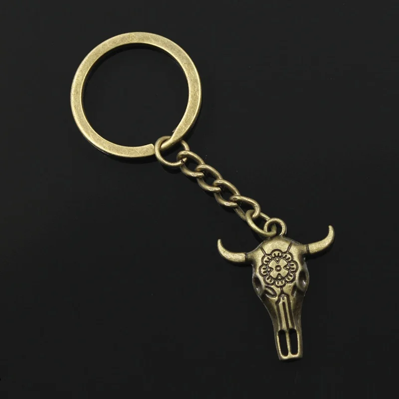 Новая мода мужской 30 мм брелок DIY металлический держатель цепь винтажный череп Бык Звезда голова 32x26 мм Серебряный цвет кулон подарок