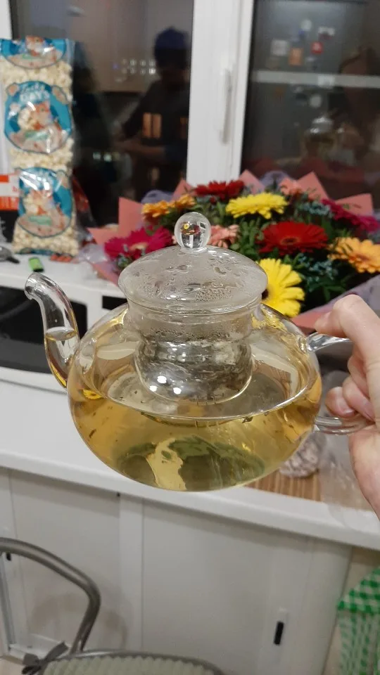 Чайник хороший. Чая в подарок продавец не положил) если хотите купить чайник для подарка, то он приходит без упаковки, просто завёрнутый в пакетики для сохранения целостности в пенопластовой коробке. Предыдущий чайник был на 600мл, этот заказала тоже 600мл, но он размером больше пришёл
