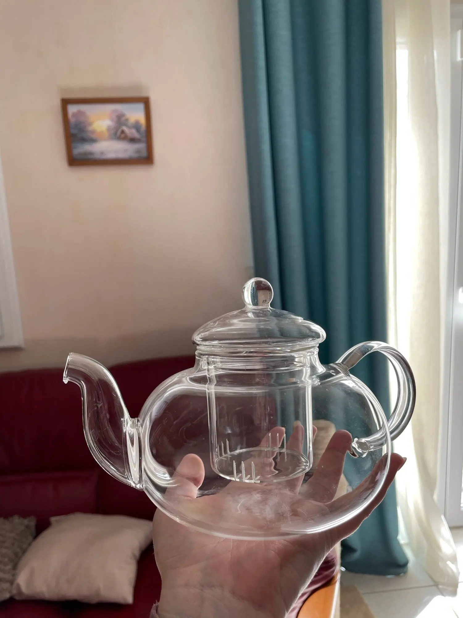 красивый чайник, удобный, но стекло очень тонкое, пришел быстро