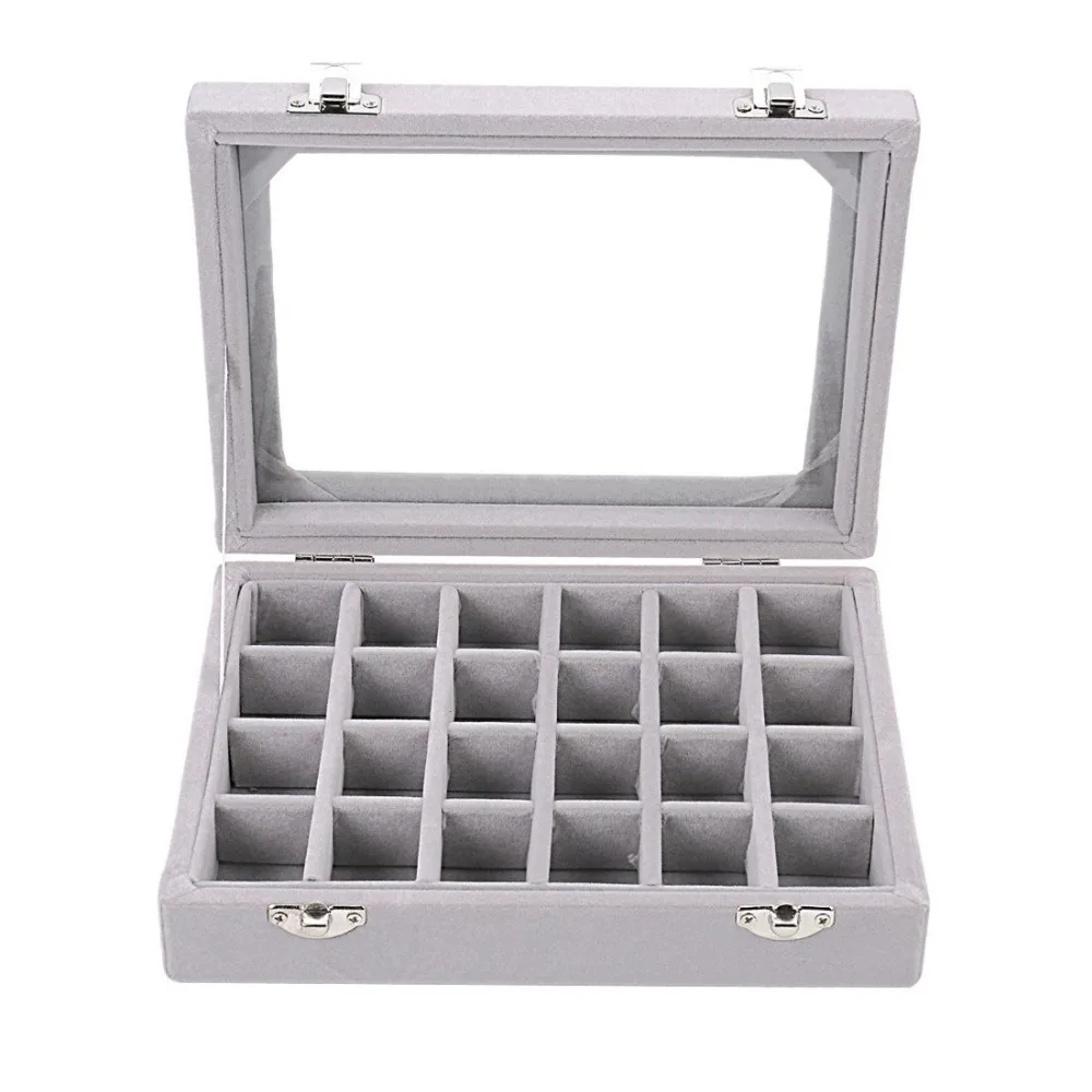 Коробка-органайзер для украшений, из бархатного стекла, с 24 отделениями, кольца, лоток для сережек, чехол для хранения