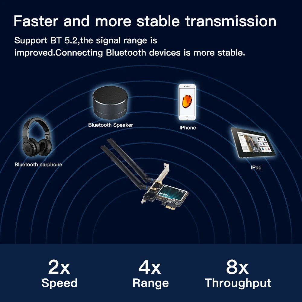 Настольный Intel AX200 Wi-Fi 6 беспроводной PCIe Wi-Fi 6E AX1800 2,4 ГГц5 ГГц для Bluetooth 5,2 AX200NGW 2,4 ГГц5 ГГц