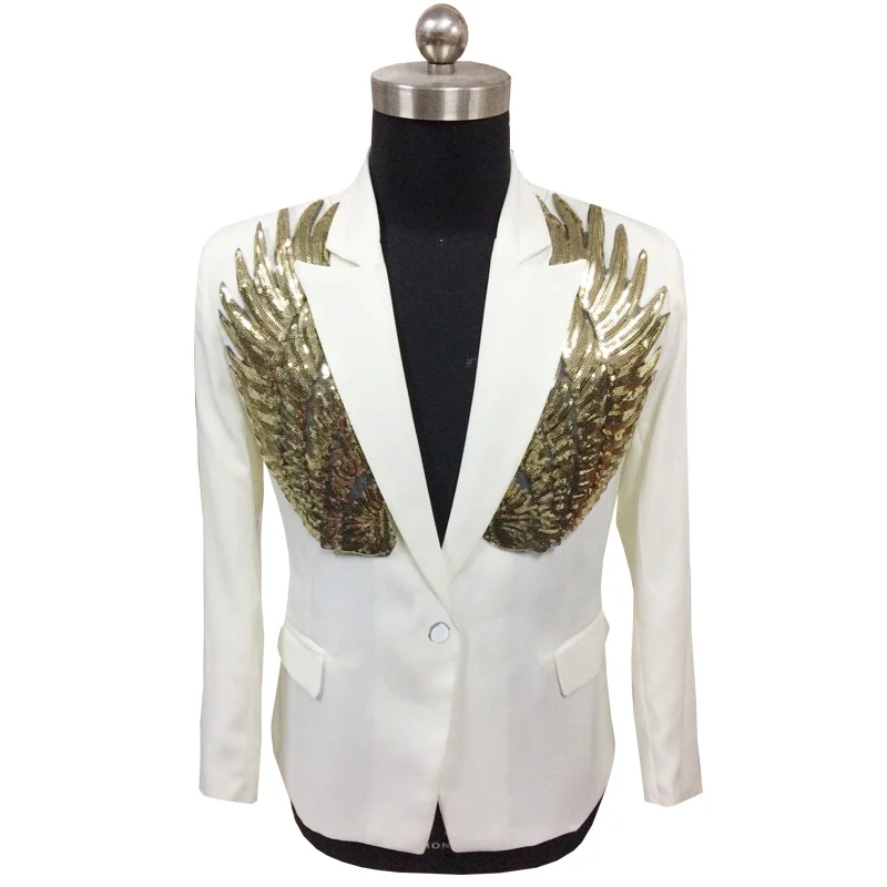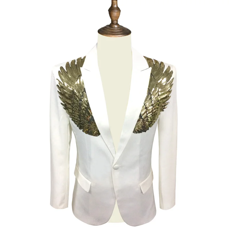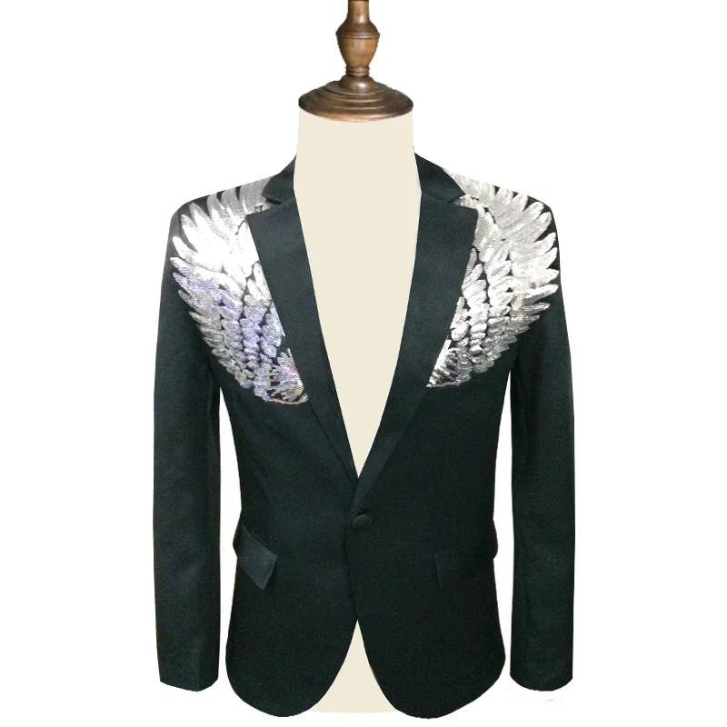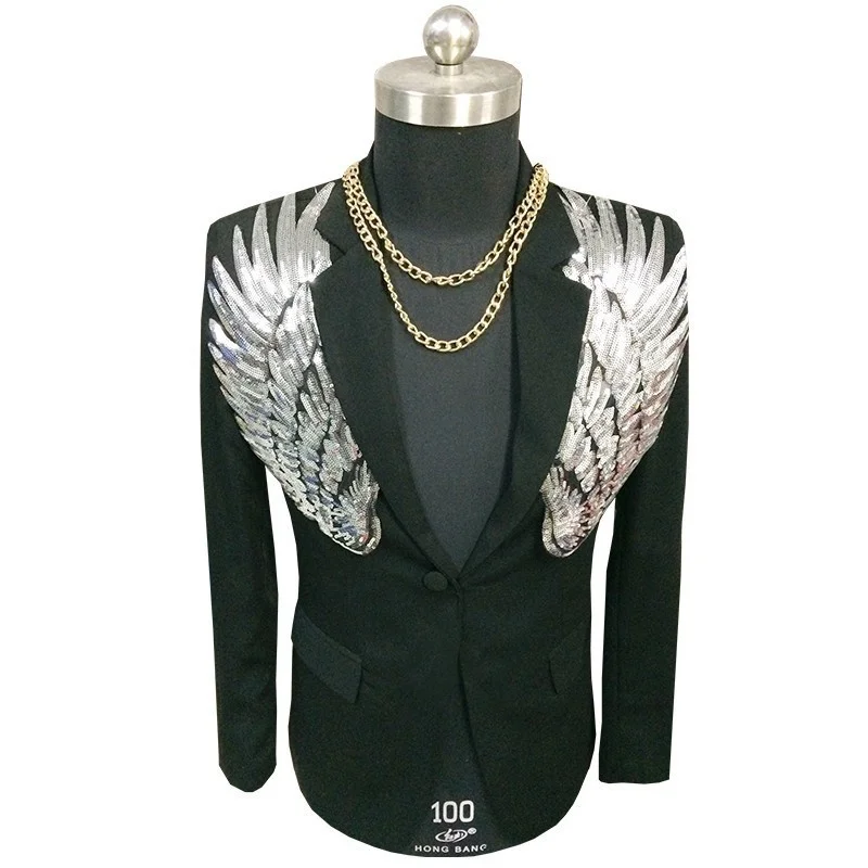 Мужской блейзер с блестками и крыльями, приталенный пиджак с блестками, золотистогосеребристого цвета, одежда для сцены