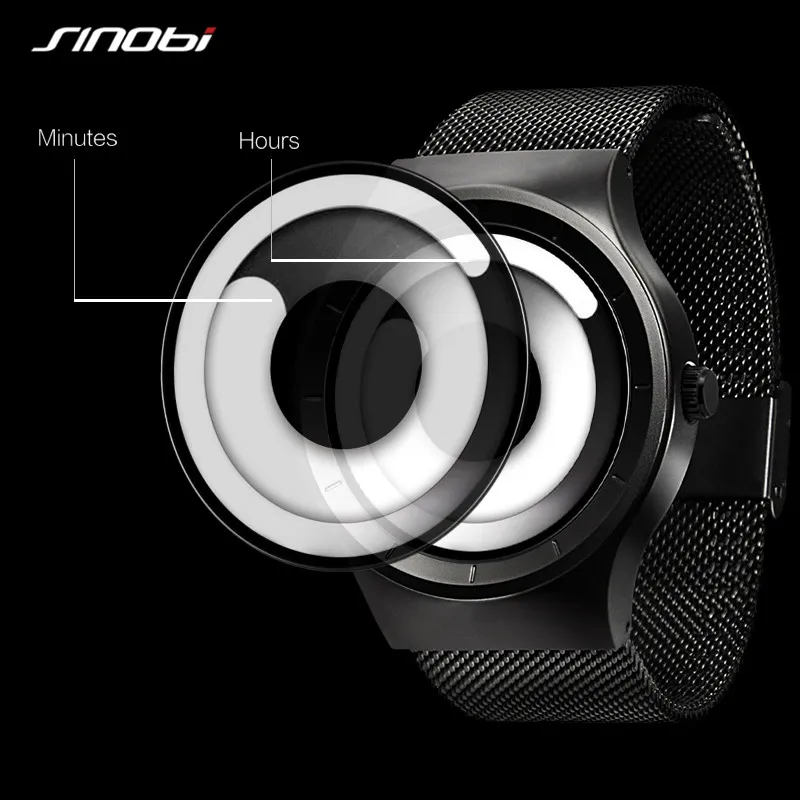 Мужские наручные часы SINOBI, черные спортивные наручные часы с уникальным дизайном, из нержавеющей стали 316L