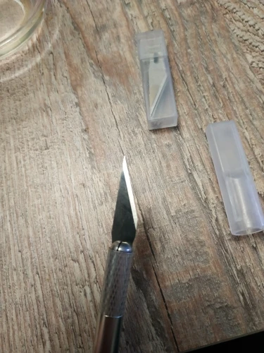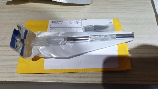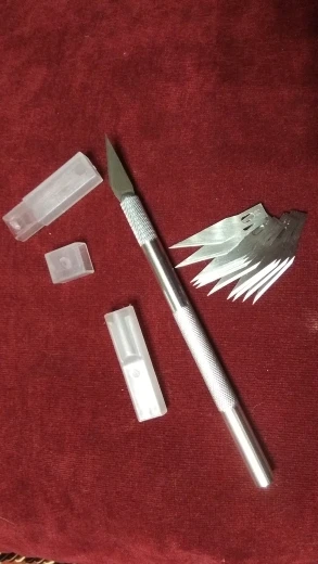 Скальпель неплохой за свою цену. Очень острый и в целом удобный. Открывал им посылки, после 10 штук лезвие всё в клею, но пользоваться ещё можно. Продавец перепутал и положил 1 лезвие вместо 11. Вернули всю сумму, буду докупать лезвия.