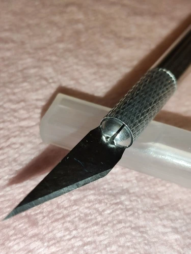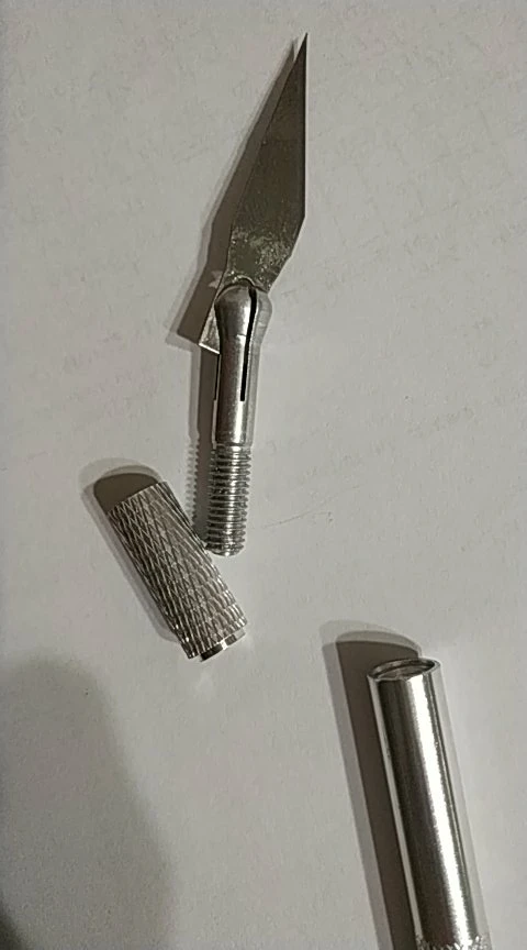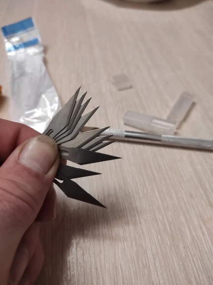 Хороший скальпель, покупаю уже не первый раз. Лезвия хватает ненадолго, но при их стоимости их можно брать пачками и использовать по неоходимости. Кончик лезвия в цанге двигается на 2-3 мм вверх-низ при использовании, но в "верхнем" положении фиксируется норм. Доставка очень быстрая - 2 недели