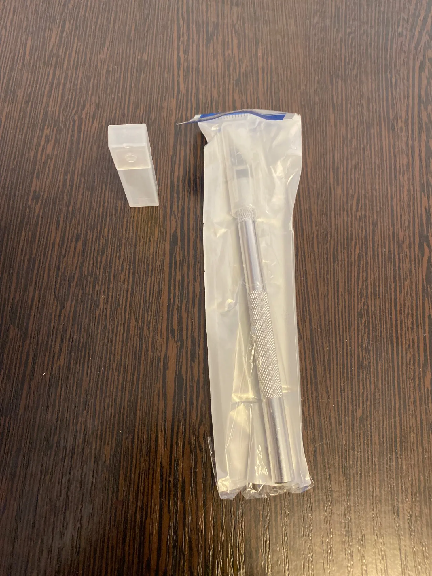 В пути 40 дней. Скальпель простетский приметивный затупил что взял без лезвий )