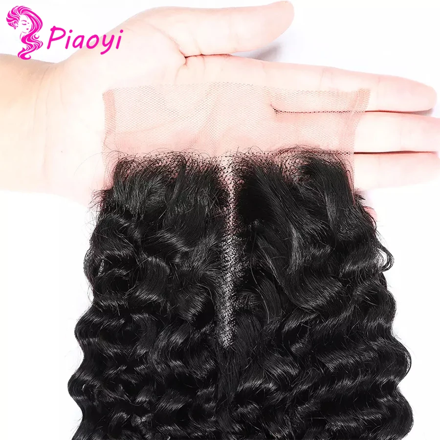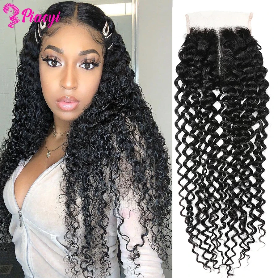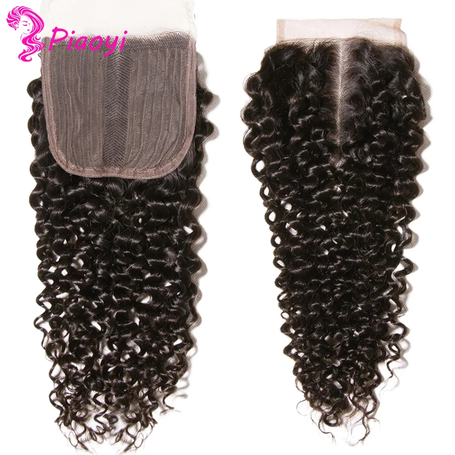 Кудрявые кудрявые человеческие волосы 4X4 кружевное Закрытие 100% ч...