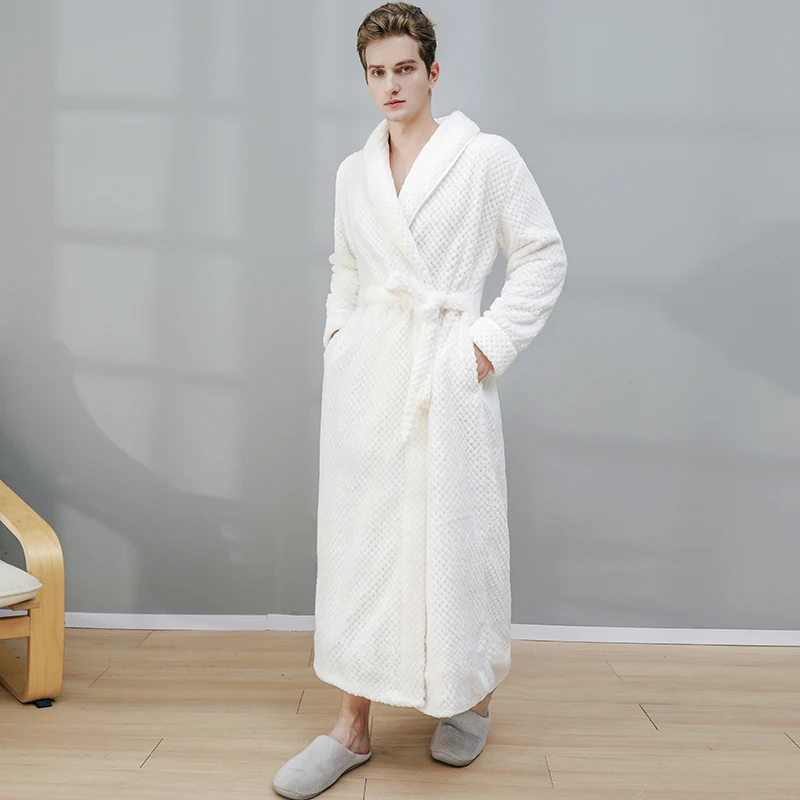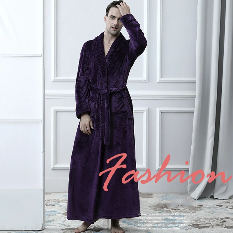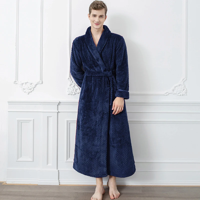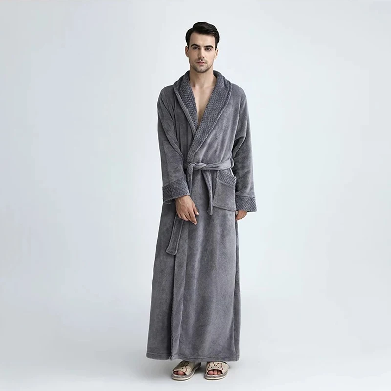 Халат-кимоно мужской, фланелевый, удлиненный, размера плюс, коралловый флис