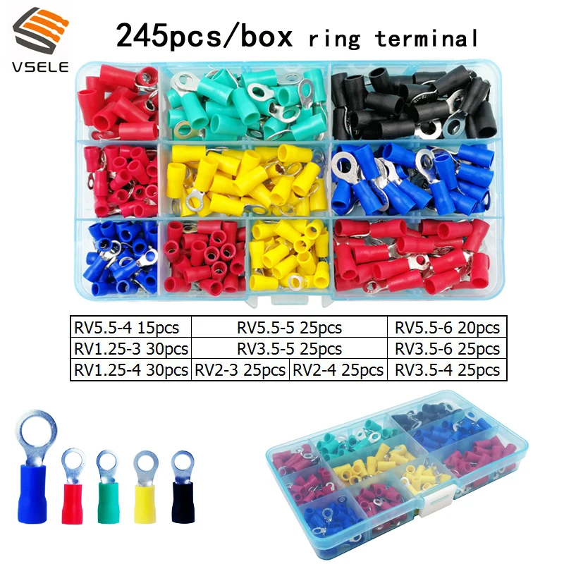 245 шт.кор. кольцо обжимной изоляции RV1.25-34 RV2-34 RV3.5-56 RV5.5-456 для 1,5 2,5 4 6mm2 провод кабель Разъем