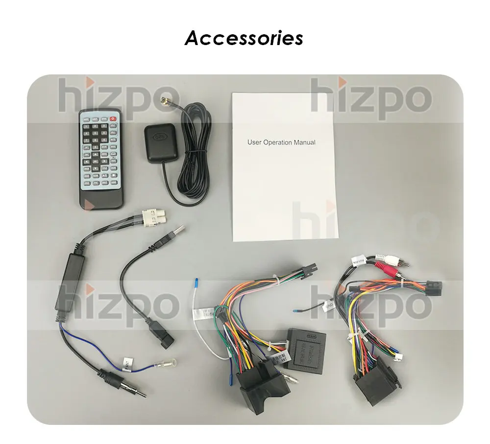 Стерео поставляется с аксессуарами, как показано на изображении аксессуаров, если вам нужен другой провод или аксессуары для установки, вам нужно купить отдельно.