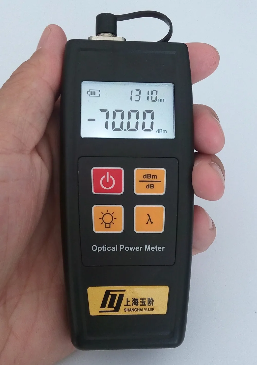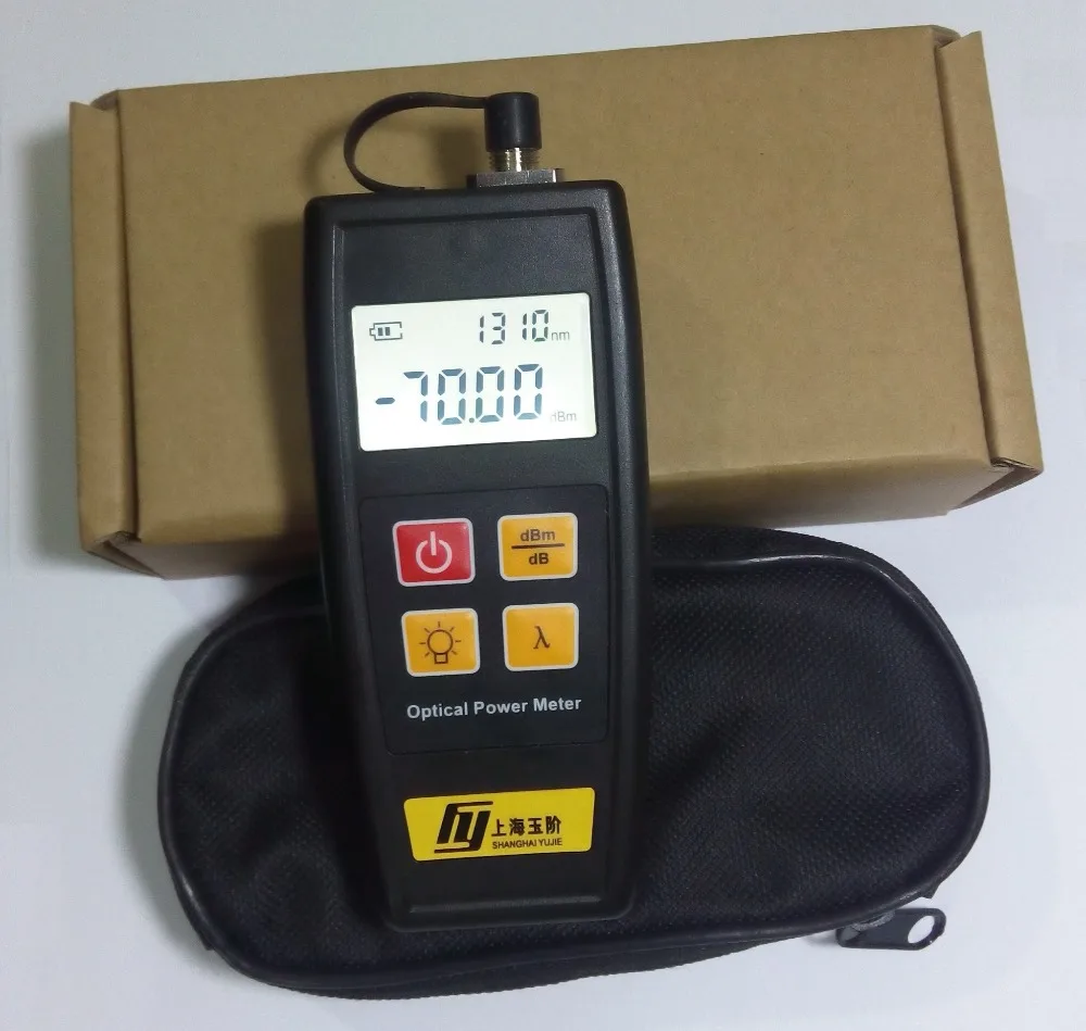 Модель YJ-350A YJ-350C Диапазон измерения -70 ~ + 6dBm -50 ~ + 26dBm Длина волны 800 ~ 1700 Тип детектора InGaAs Неуверенность ±5% Калиброванная длина волны 850/1300/1310/1490/1550/1625 Точность 0,05 дБ Рабочая температура -10~+ 50 (°C) Время автоматического отключения 10 мин Время работы 120h Размеры 128 × 52 × 22 мм Аккумулятор 3×AA 1,5 V Вес 100 г