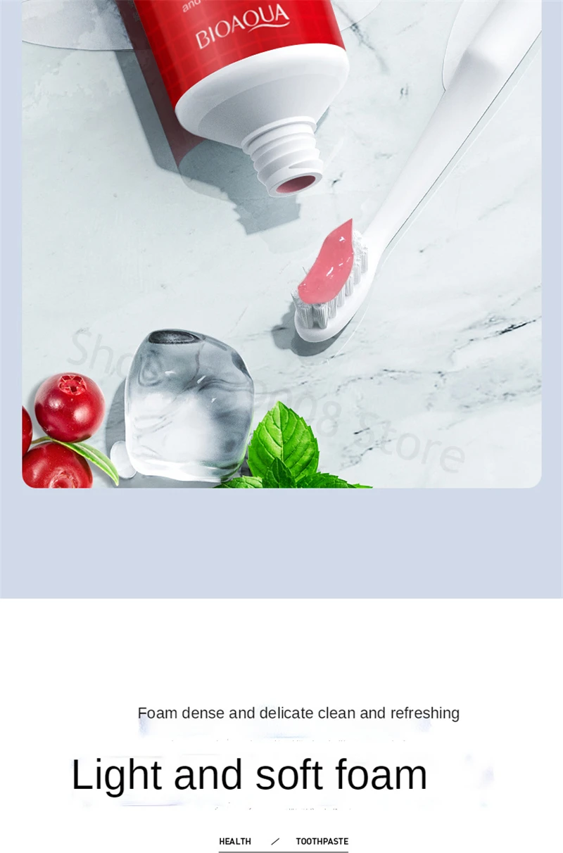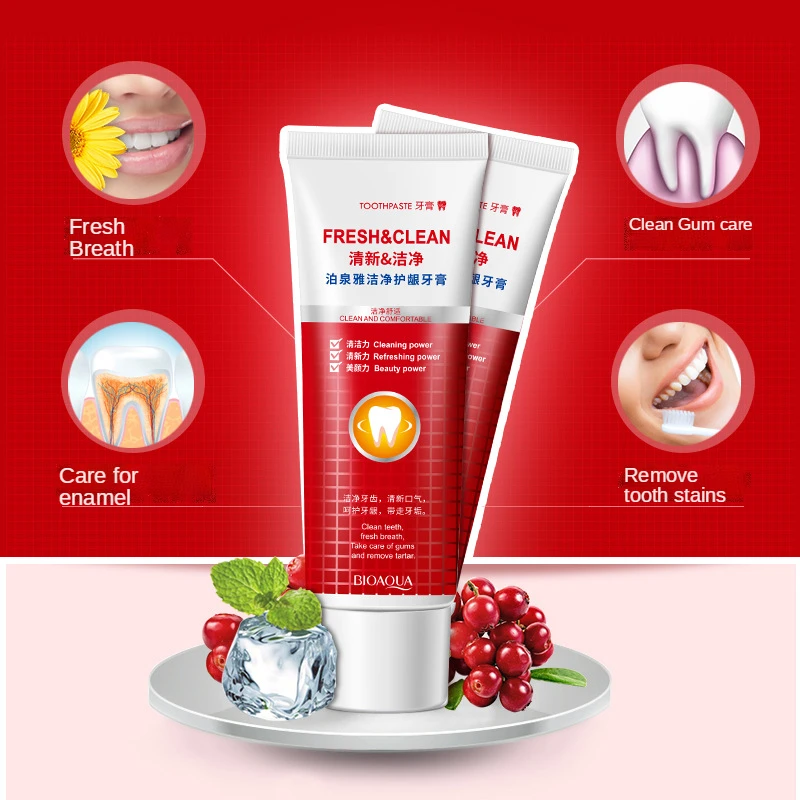 Зубная паста BIOAQUA для отбеливания зубов, с клюквой, мятой, для ухода за деснами, для удаления пятен с зубов, неприятного запаха, глубокой очистки, гигиены полости рта 120 г