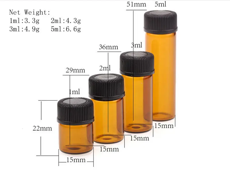 100 шт.лот 1 мл2 мл3 мл5 мл мини-емкости для эфирных масел из янтар...